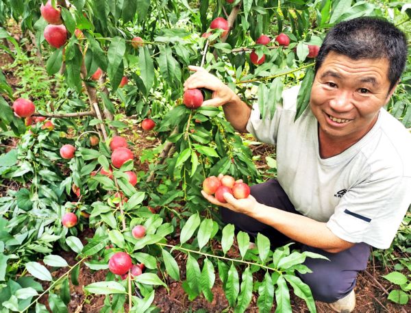 侯春选是全村有名的致富能人。前几年,他创办香菇厂,不仅自己致富了,还吸纳不少村民务工增收。2018年,他又率先从外地引进5亩早熟珍珠油桃新品种。经过精心管理,今年上市的油桃口感脆甜,吸引了不少顾客入园采摘。在他的带动和影响下,许多村民也纷纷效仿,发展起早熟珍珠油桃。侯春选说:“我是党员,要为村民致富带好头。” 特约摄影 鲁国林