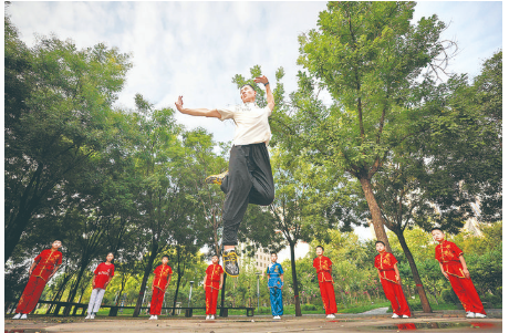 ◀8月9日,武术教练刘超路(前)为学生们示范武术动作。 河北省沙河市有着悠久的习武传统。暑假期间,许多当地青少年通过武术训练增强体质,度过一个健康充实的假期。 新华社发