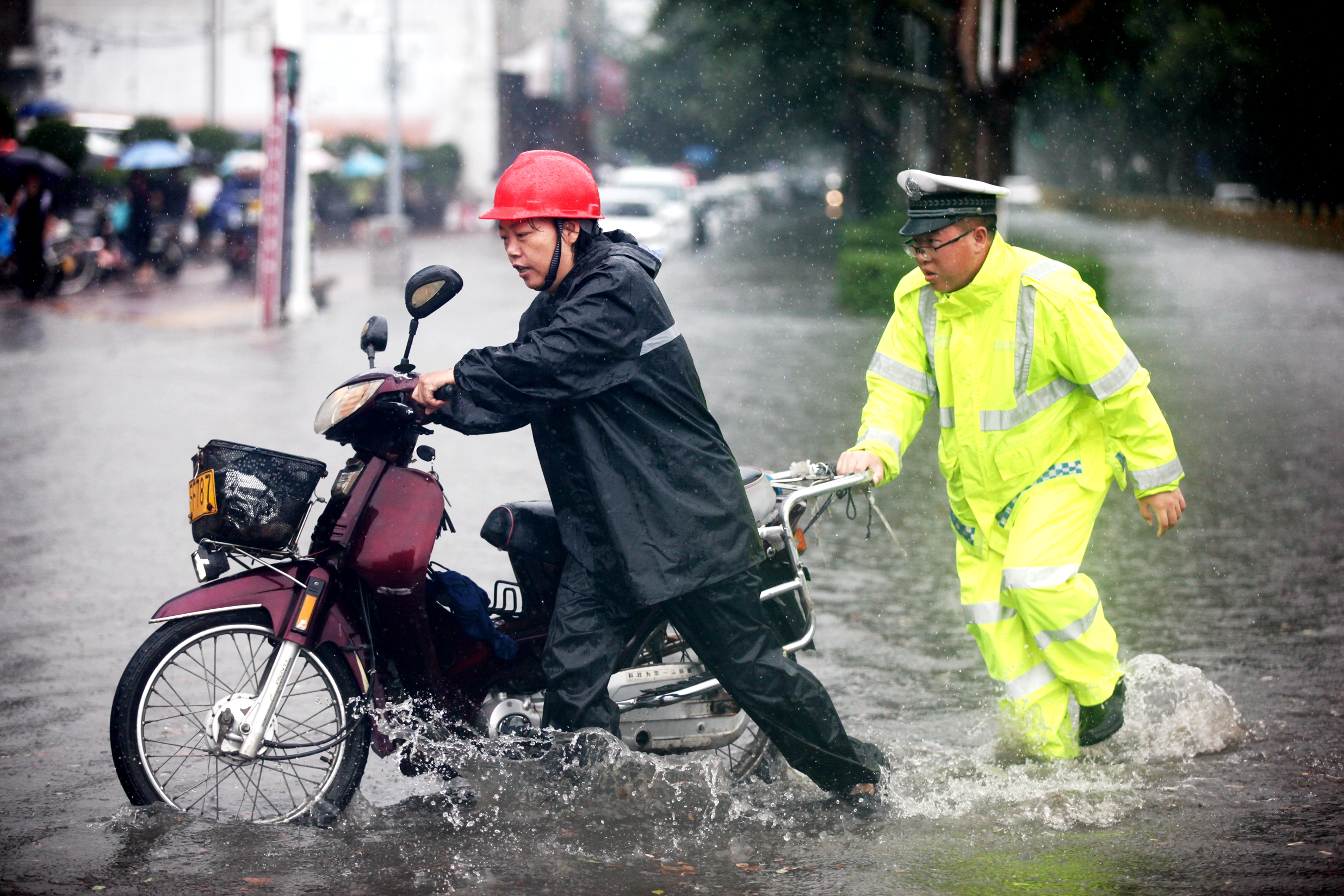 回想当时站在积水路面指挥交通的情景,六中队的一名民警说:“当时只想尽快疏通道路。”
