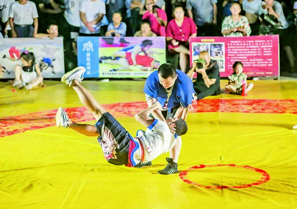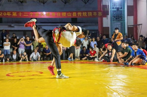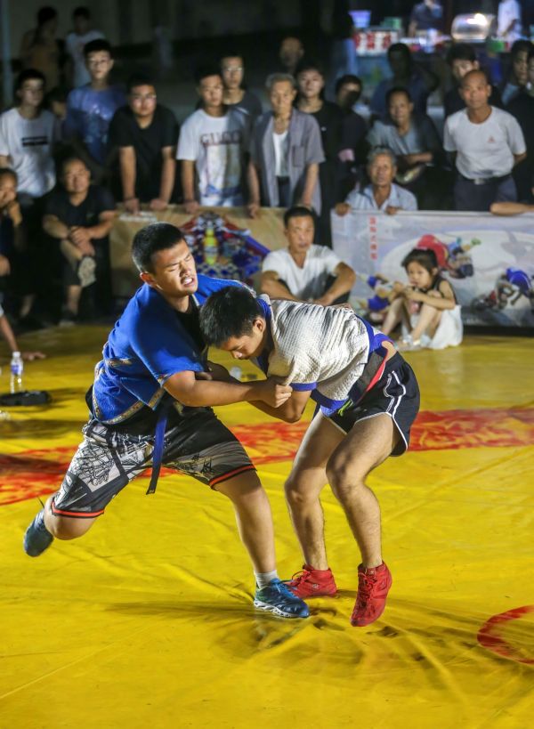 8月8日,稷山县清河村文化广场上,由稷山县体育发展中心主办、清河跆拳道馆承办的“全民健身日”传统“挠羊赛”,吸引了100余名摔跤爱好者参加。比赛分为少年组、青年组和成人组。 特约摄影 史云平