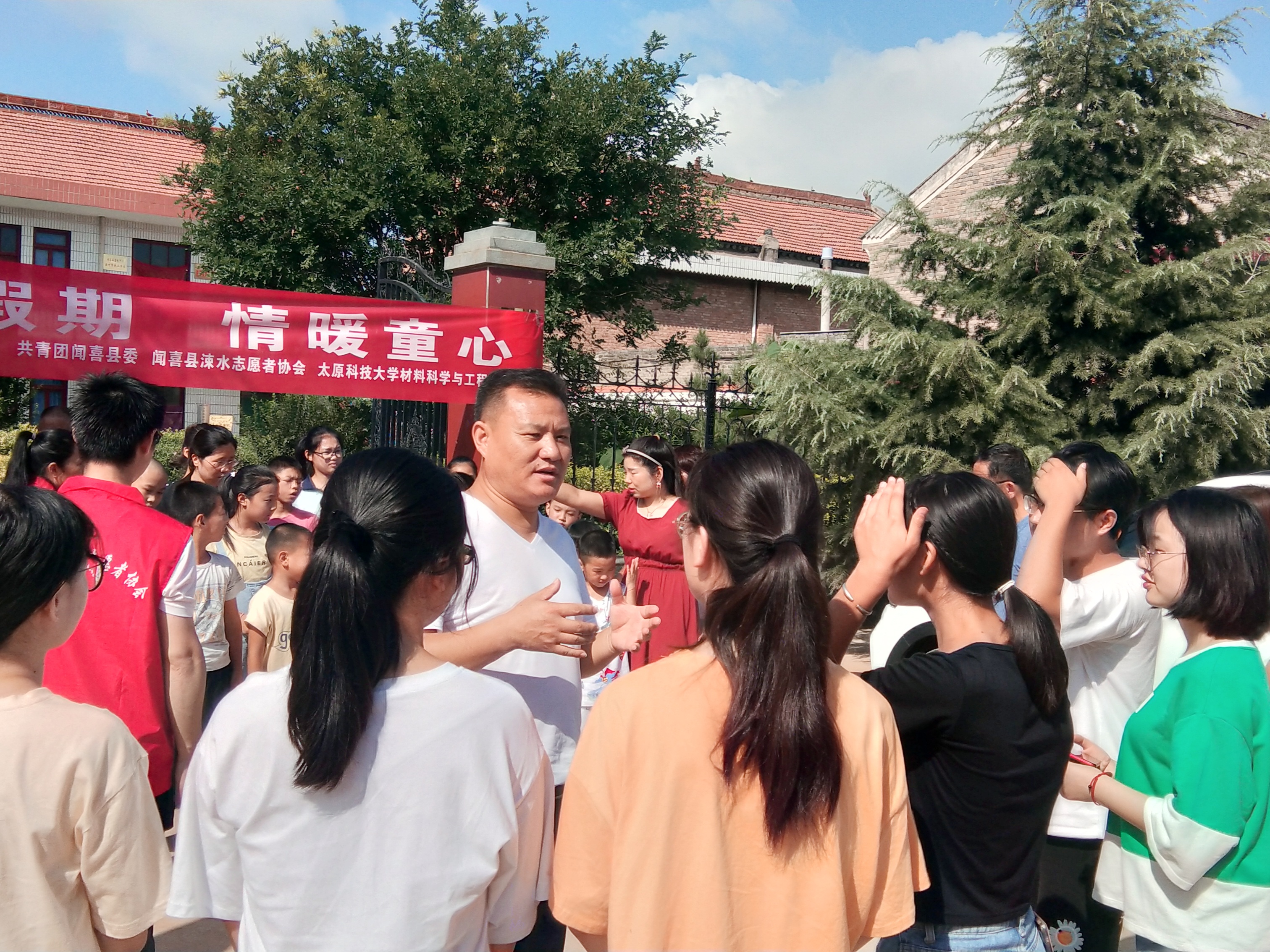 8月5日起,共青团闻喜县委联合闻喜县涑水志愿者协会志愿者,以及太原科技大学材料科学与工程学院的大学生们,在闻喜县河底镇江子沟村举办为期1周的“七彩假期·情暖童心”主题活动,关爱留守儿童,促进青少年健康成长。 此次活动,以“志愿者+大学生+现代教育+正能量”的形式为留守儿童送温暖。活动开启的当天,志愿者和大学生们用自己的求学奋斗故事,去唤醒留守儿童心中对未来世界的期盼,让他们懂得,知识可以带着他们去见识更广阔的舞台。 特约摄影 刘佳