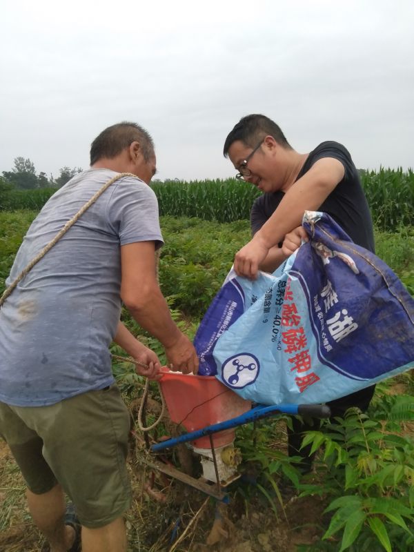 芮城县委选派机关年轻优秀党员到农村任职以来,选派到大王镇观庄村任党支部书记的李阳(右),积极向村里庄稼把式学习农业技术,与村民一起为村香椿育苗基地施肥,为壮大村集体经济出力流汗。 杨惠生 摄
