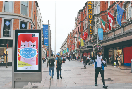 ▲8月10日,在爱尔兰都柏林,一名男子经过提醒人们佩戴口罩的电子海报。 爱尔兰政府规定从10日起,在商场、购物中心等零售场所必须佩戴口罩。 新华社发