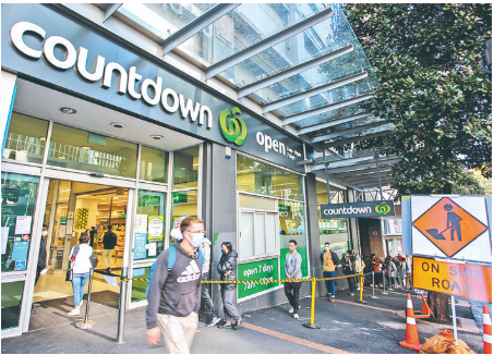 ▲8月12日,一名戴口罩的男子走出新西兰奥克兰市中心一家超市。新西兰总理阿德恩11日晚说,奥克兰报告4例感染源不明新冠病例,12日中午起,防疫响应级别上调至3级。新华社发(威尔逊 摄)