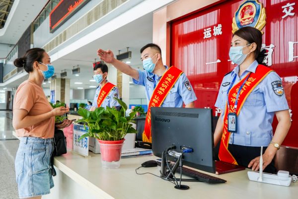 “您好,请问需要办理什么业务?”“请往这边走,在33号窗口办理”……8月14日,在车管所秩序大厅,负责导办的工作人员主动上前,引导前来办理业务的市民前往相应窗口。在大厅中央,一号窗口的民警在为办理业务的市民答疑解惑。“我是第一次来车管所办理新车上户手续,什么都不懂,一进来就有工作人员热情接待,领着我去指定窗口。”前来办理新车上户业务的市民闫肖光说,“业务很快就办完了,窗口工作人员服务态度很好,工作效率也很高。”