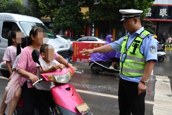 ▲8月14日,夏县交警大队城镇中队民警执勤时,发现一名女子驾驶的电动车上载有4人。民警当即示意其靠边停车。随后,民警向该女子讲解了驾驶电动车的相关法律法规,并根据《道路交通安全法》相关规定,对其进行了处罚。 李官海 摄