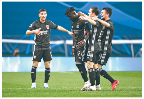 ▲8月15日,里昂队球员科尔内(右三)进球后与队友庆祝。 当日,在葡萄牙里斯本举行的2019-2020赛季欧冠联赛四分之一决赛中,法甲里昂队以3比1战胜英超曼城队,晋级四强。新华社/美联