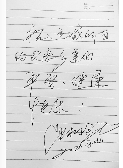 采访中,陆先生还为运城的父老乡亲题了字,通过晚报向大家送出深深的祝福:“祝愿运城所有的父老乡亲们,平安、健康、快乐!陆树铭,2020年8月14日。”字体遒劲、力透纸背!