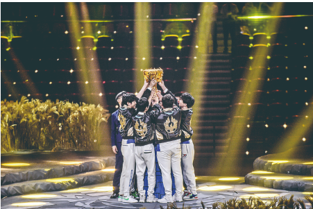 ▲8月16日,TS豚首战队队员及教练捧起金凤凰杯。 当日,在北京凯迪拉克中心举行的2020王者荣耀世界冠军杯总决赛中,TS豚首战队以4比3战胜DYG战队,捧起金凤凰杯。 新华社记者 彭子洋 摄