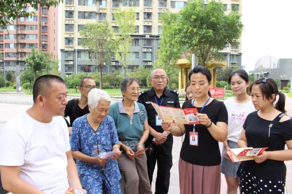 ▲8月13日,闻喜县龙海社区居委会工作人员在辖区公园壹号小区,向居民宣传防毒拒毒等有关常识和法律法规。