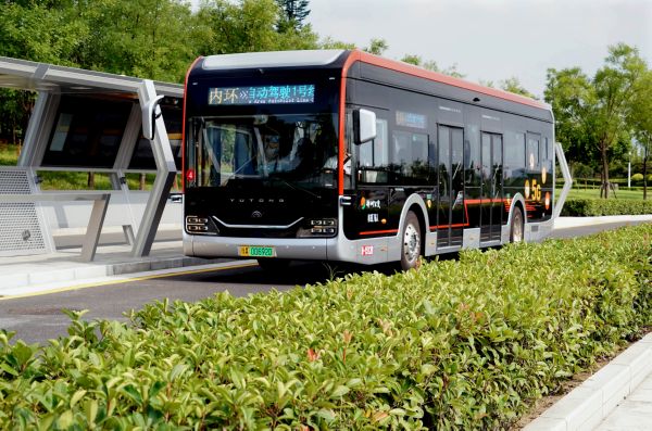 近日,郑州市郑东新区自动驾驶公交1号线进行试运行。此次试运行的自动驾驶公交项目,采用5G信号覆盖、车路协同、人工智能等先进技术,结合智慧站台、智慧场站等一体化管控系统,实现驾驶车辆智能监控、安全预警和与其他社会车辆的同域协同运行。 新华社记者 李安 摄