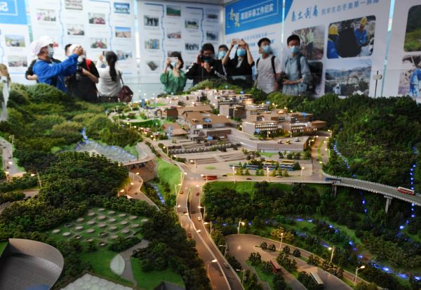 ▲这是8月20日拍摄的北京冬奥会延庆冬奥村沙盘模型。