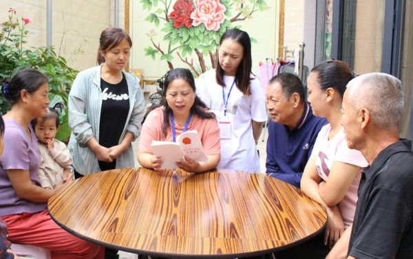 8月18日,闻喜县西城社区居委会工作人员与辖区居民一起交流学习民法典相关知识。