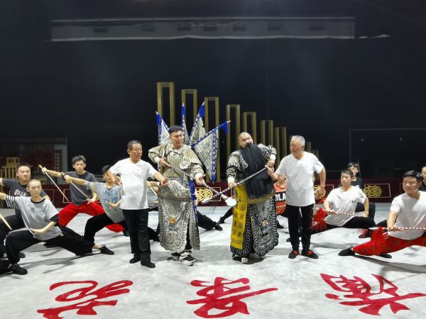 就在同一时间段,该团20多位男演员,还有市艺校的一些学生正在蒲景苑的舞台上排练武戏《雁荡山》。该剧很有特点,没有唱词、没有念白,是一出纯粹展示武技的折子戏。