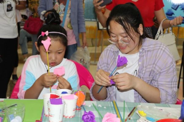 现场设5个展台,摆放着近200件由志愿者和孩子们用废品制作的各类艺术品。废纸箱做相框、一次性塑料水桶“摇身一变”成储物罐、一次性筷子做纸伞、外卖餐盒做工艺品……另外,活动还设置了用烟头兑换鸡蛋环节,鼓励大家捡拾烟头,保护环境。