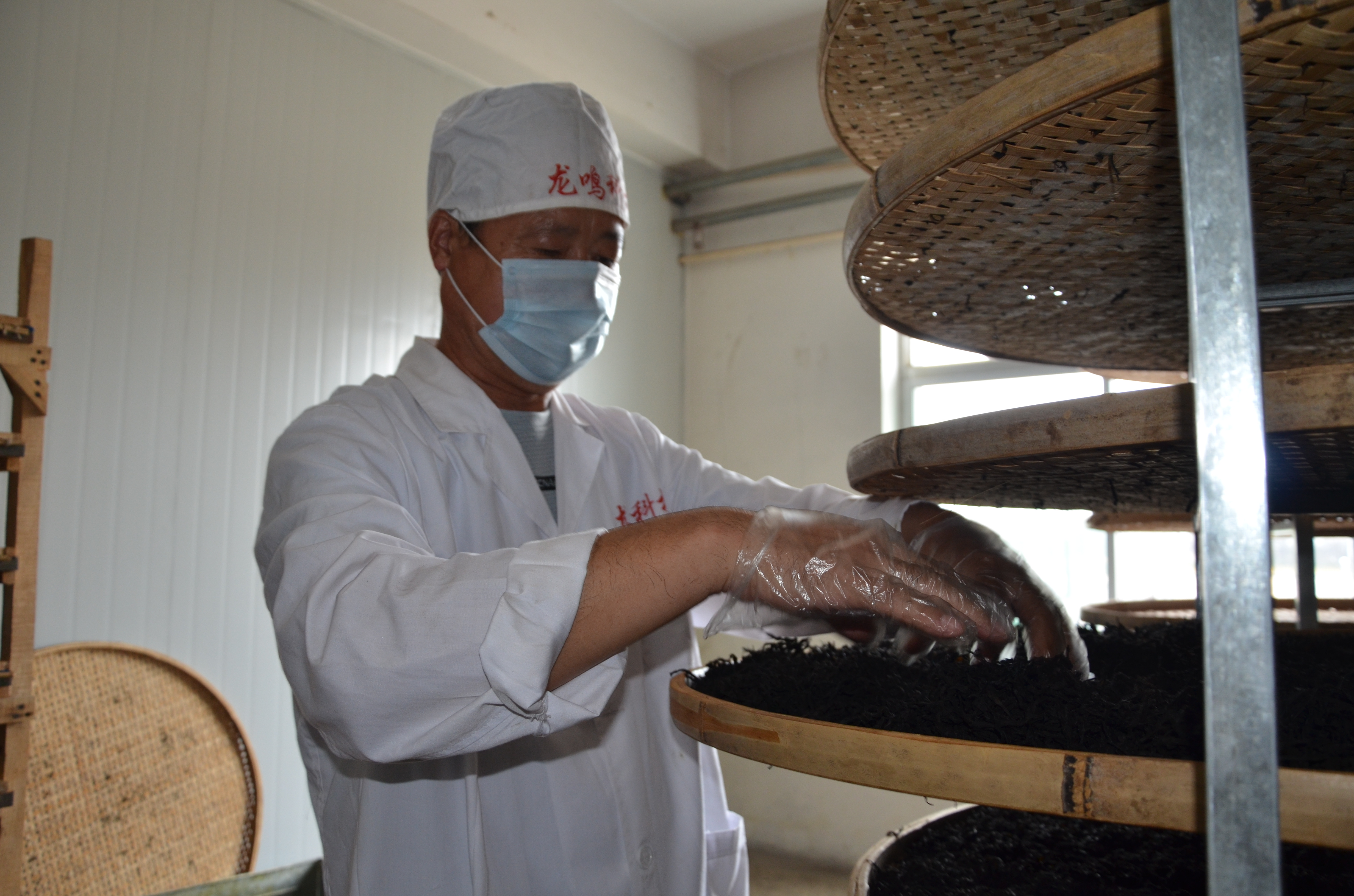 辛灵海在检查杜仲茶的发酵情况 刘凯华 摄