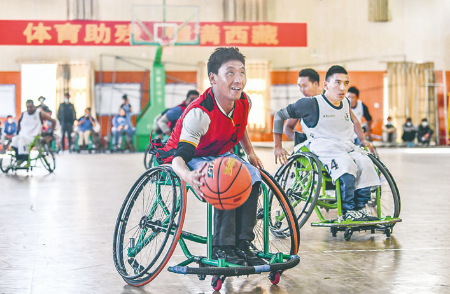 当日,由西藏自治区体育局和西藏自治区残疾人联合会共同主办的关爱残疾人轮椅篮球队公益活动,在西藏自治区社体中心篮球馆举行。本次活动以“篮球让生活更美好”为主题,旨在大力营造全社会关心和支持残疾人体育事业的良好社会氛围。