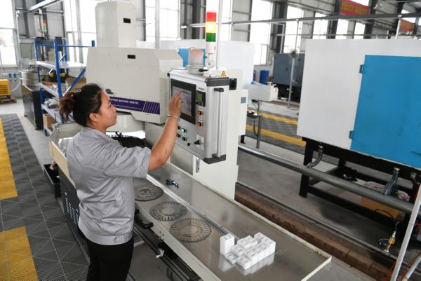 8月25日,稷山县超硬材料工具产业创新创业基地杰傲雕刻刀具有限公司员工在紧张作业。