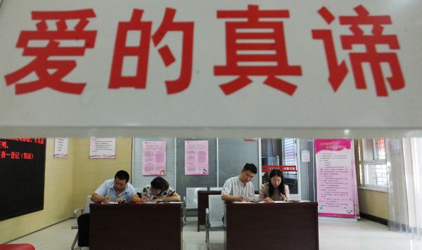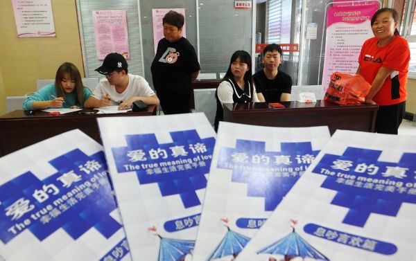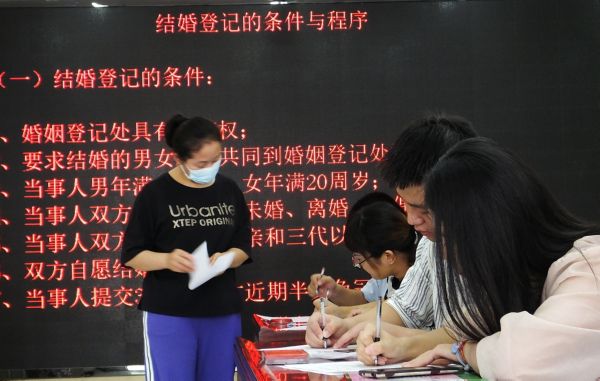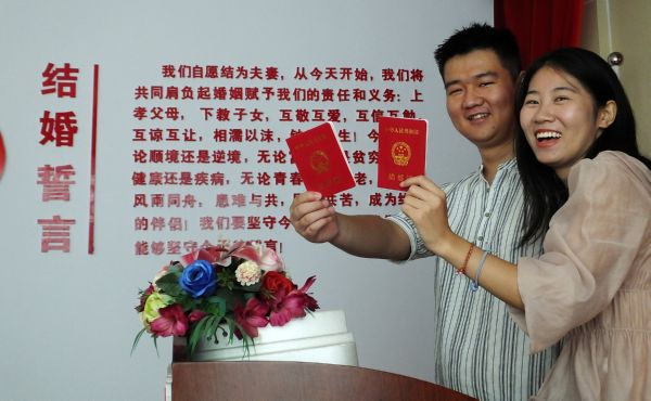 当日是七夕节,不少新人在该县民政局婚姻登记处登记领证,开启甜蜜的婚姻生活。 特约摄影 高新生