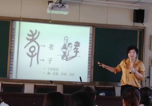 高伟以“孝”字为核心,从育人之道、教子有方、教学之悟等方面带领教师们反观内心。她先谈到了因亲以教爱,做人的根是“孝”,教师们要引导广大青少年从小养成孝敬父母、尊敬长辈的良好品质,帮助他们树立正确的世界观、人生观和价值观,把青少年培养成有孝、有仁、有义、有忠、有信、有文化的一代新人。随后,高伟谈了教之以义方。她说,作为教师,同时也作为家长,应该引导孩子做家务,培养孩子的生活技能、养成良好的生活习惯。