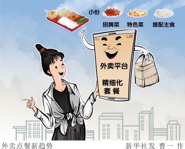▲“外卖套餐的搭配很重要,既能享受到多种美味,还避免了浪费。”上海的蒋女士有着10年点外卖的经验,她发现,如果单点招牌菜或者特色菜,价格会比较高、菜量也比较大,容易造成浪费。如今外卖平台推出一些精细化套餐,小份的招牌菜、特色菜搭配主食,比较经济划算。 新华社发 曹一 作