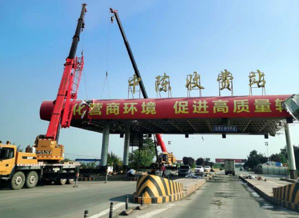 8月30日,运稷路中陈收费站拆除施工现场,吊车在进行吊装拆除作业。此举标志着该收费站结束了12年的收费史,退出车辆收费历史舞台。