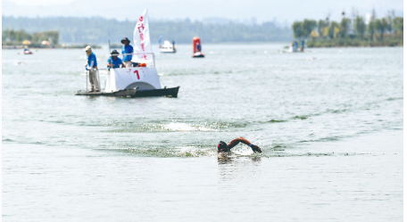 ▲8月30日,陕西队队员赵捃博航在男子10公里团体赛中冲刺。最终,陕西队以5小时59分37秒3的总成绩获得该项目第一名。 当日,2020年全国马拉松游泳冠军赛暨东京奥运会选拔系列赛在山东淄博举行。 新华社记者 王凯 摄