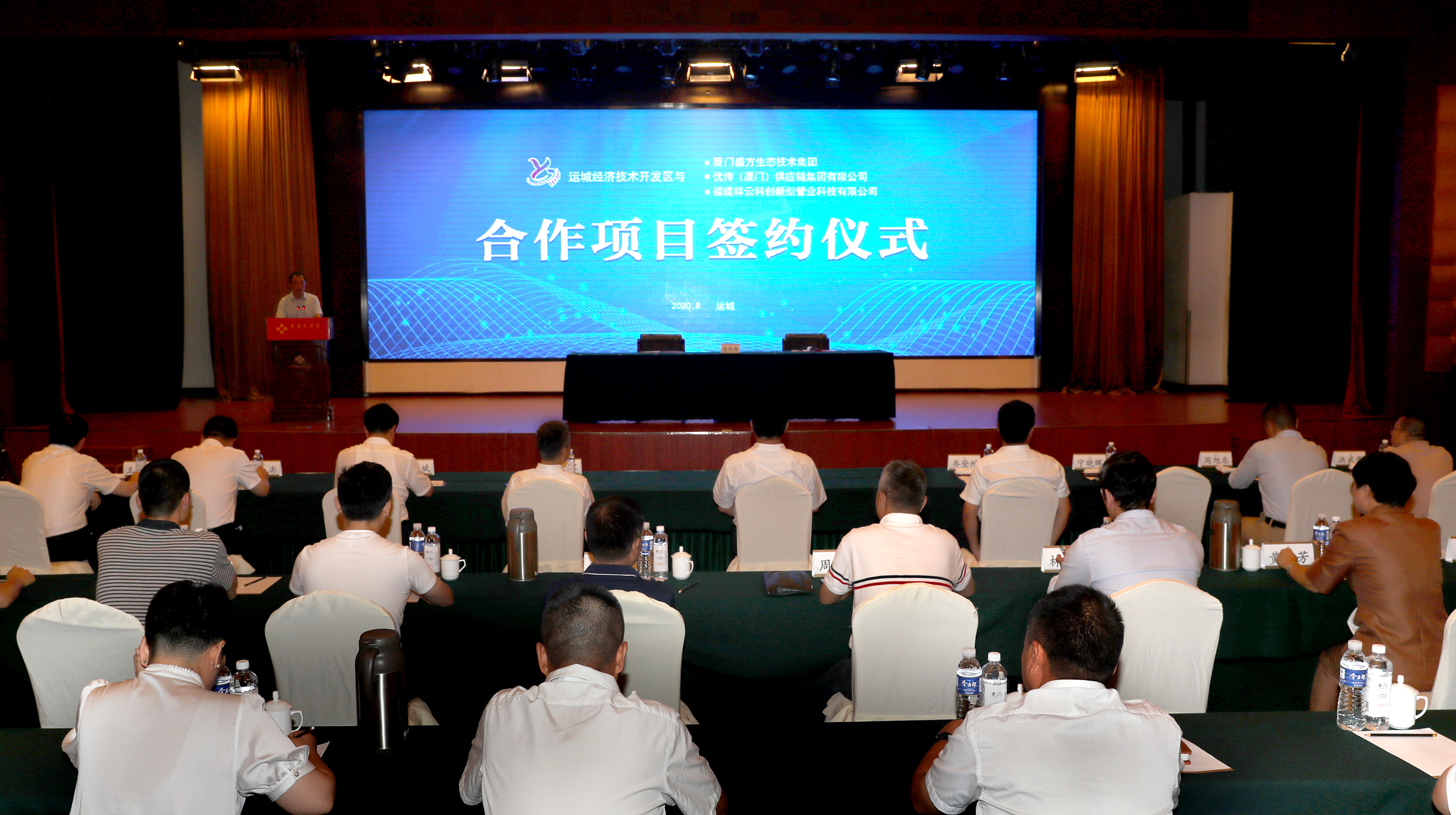 运城日报讯(记者 王文军)8月29日,运城经济技术开发区举行合作项目签约仪式,分别与厦门盛方生态技术集团、优传(厦门)供应链集团有限公司、福建祥云科创新型管业科技有限公司签订项目合作协议,总投资约37亿元。市委书记丁小强,福建省四川商会顾问扈军,厦门盛方生态技术集团有限公司董事长宁晓晖,市委常委、秘书长乔登州出席仪式并见证签约。副市长崔元斌主持签约仪式。