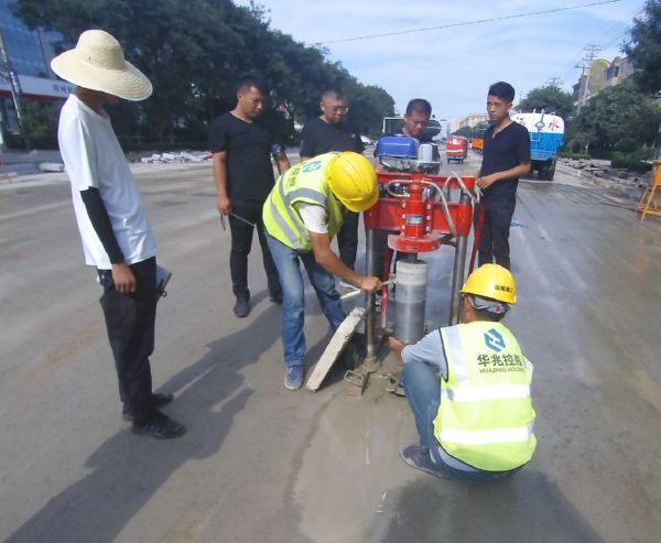 工作人员对水稳层进行钻芯取样,用以查看工程质量。 祁克宁 摄
