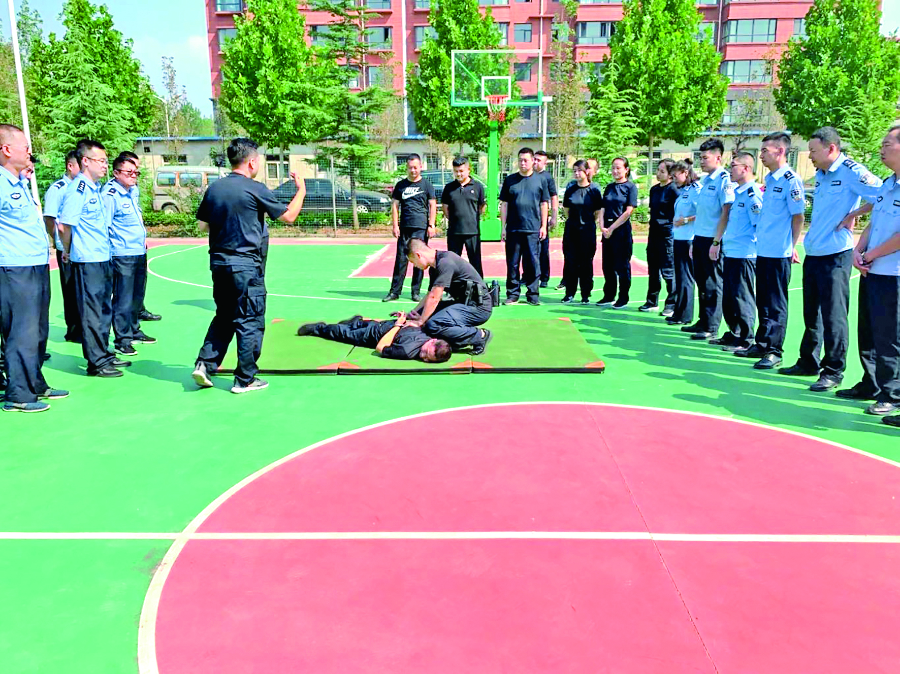 培训中,教官采取理论讲解、动作示范、分组训练和实战模拟等形式,循序渐进地加深民警对警务实战的理解。同时,通过对日常警务工作中的成功经验和不规范行为进行比较,让规范执法深深刻在民警心里。 张金萍 摄