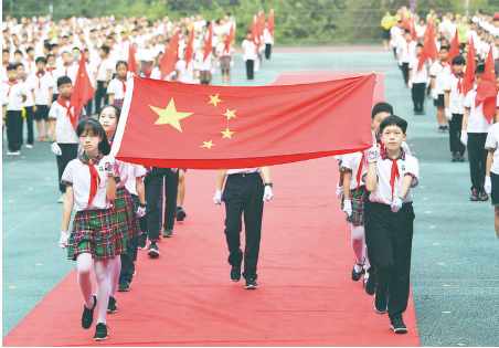 国旗在校园上空高高飘扬,清风吹进窗明几净的教室。