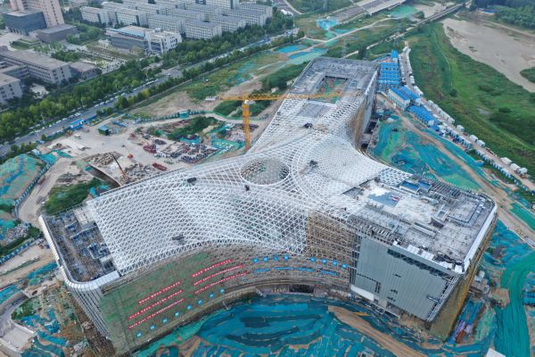 ▲这是位于郑州市郑东新区的建设中的河南省科技馆新馆(8月31日摄,无人机照片)。