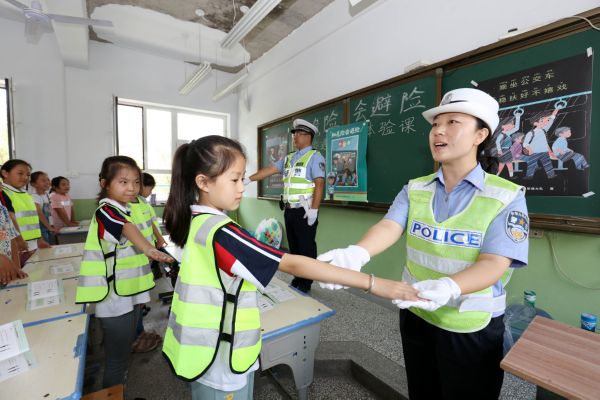 当天是各中小学的开学日。为增强辖区中小学生交通安全意识,河津市交警大队组织民警、义务宣传劝导员、交通文明志愿者走进学校,开展以“知危险,会避险”为主题的交通安全体验课,向学生传授安全步行、安全骑乘、交通避险和道路交通应急处置等方面的知识。 特约摄影 李泓晓