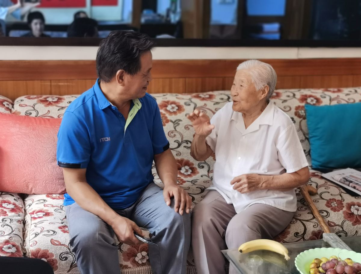 ▲市总工会调研员杨晓看望工会离休老干部刘根林(右) 柴孟婷 摄