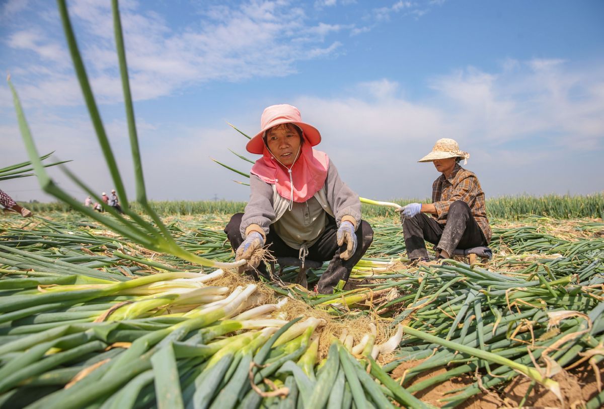 ▲初秋时节,稷山县太阳乡太阳村村民刘关杰家种植的40余亩大葱喜获丰收。9月1日,村民忙着采收和整理大葱,田间地头一派热闹景象。