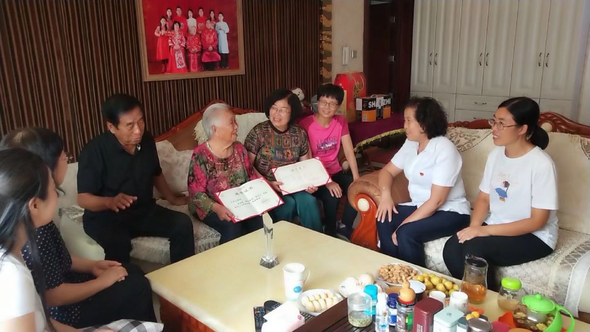 ▲工作人员为王玉山家庭颁发证书 寻霄 摄