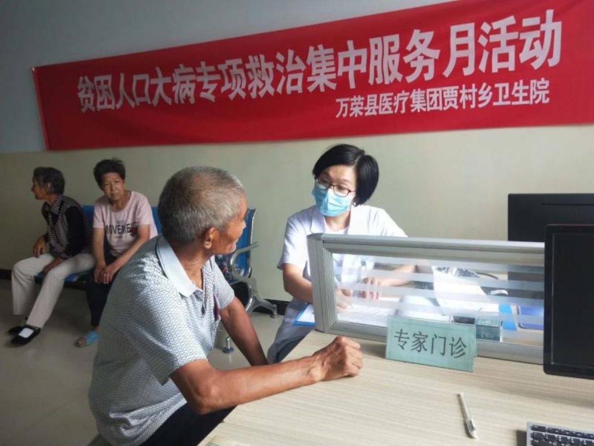 8月30日,万荣县人民医院医生与贾村乡卫生院医生对辖区内65名罹患大病患者进行问诊,并耐心为他们讲解“贫困人口大病专项救治活动”政策。随后,他们还一同到腿脚不便的患者家中问诊、讲解政策。