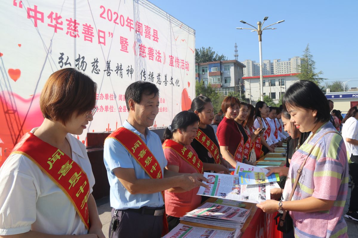 9月3日,闻喜县民政局、闻喜县慈善总会在该县人民广场举办2020年中华慈善日暨《中华人民共和国慈善法》主题宣传活动。