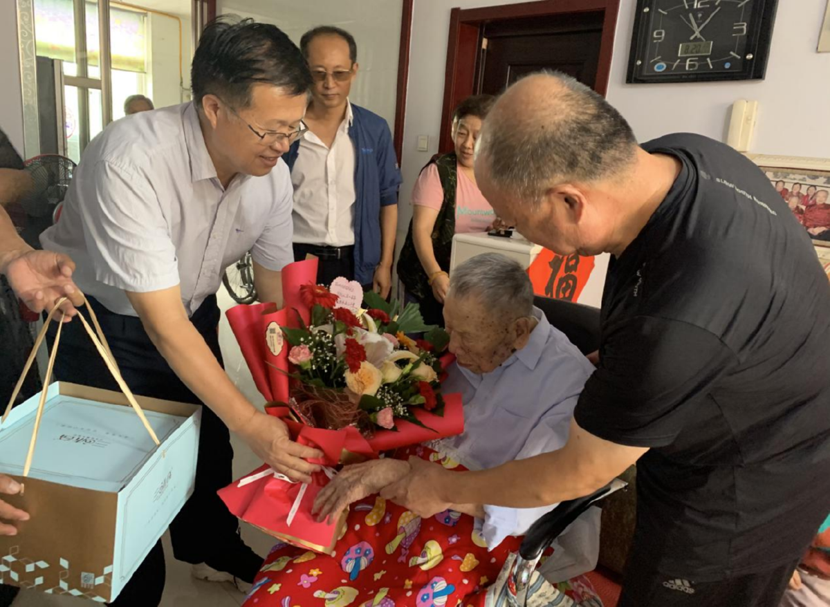 运城日报讯 近日,在离休干部徐元荣百岁生日之际,平陆县委组织部副部长、老干部局局长苗顺国一行登门祝贺,为徐老百岁寿辰送上祝福,送上鲜花和生日蛋糕,带去了党组织的关怀和问候(上图)。
