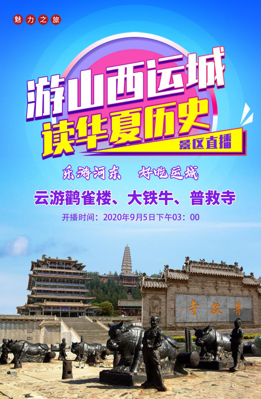 9月5日(本周六),由运城市文化和旅游局举办的“‘游山西运城·读华夏历史’——乐游河东,好吃运城”景区系列直播活动将来到永济。跟随主播和导游的脚步,一起去看看舜风唐韵,德义永济。