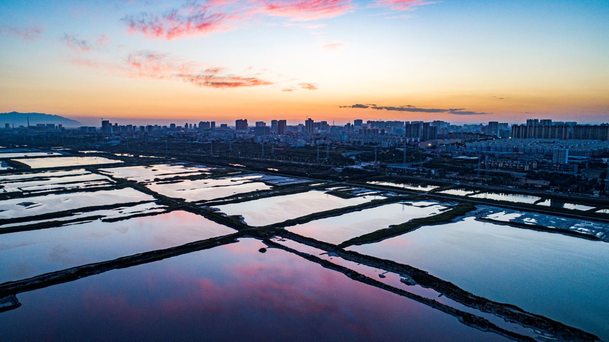 9月3日拍摄的运城盐湖。在漫天霞光的映射下,盐湖犹如天空之镜,把我们的城市装扮得更加美丽多姿。记者 金玉敏 摄