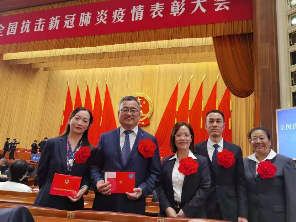 9月8日上午,郝红慧(中)在北京人民大会堂参加全国抗击新冠肺炎疫情表彰大会。