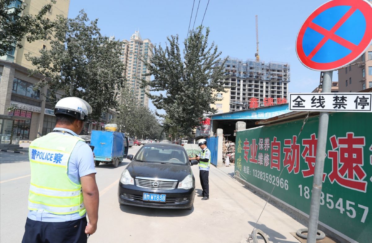 9月7日,盐湖公安交警大队民警在市区老运临路,对乱停乱放的车辆进行整治。