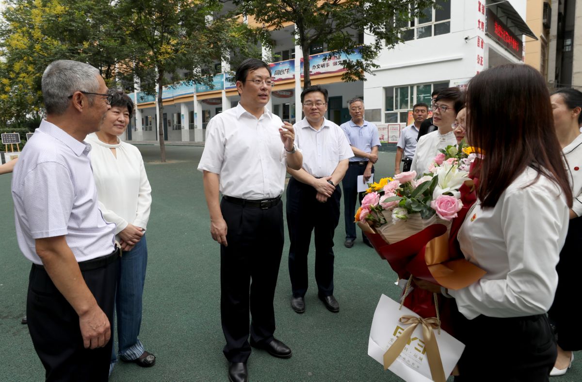 “大家辛苦了!在教师节来临之际,我代表市委、市政府和全市人民向大家致敬!祝大家节日快乐!”在市逸夫小学,丁小强向优秀教师代表史小苗、霍峰娟送上鲜花、慰问金和慰问品,勉励她们再接再厉、继续奋斗,培养出更多优秀学生。在仔细了解教师队伍、教育特色、德育教育等情况后,丁小强要求,学校要抓好学生日常行为习惯的养成教育,在德智体美劳的评价上积极探索,形成一套科学有效的评价体系,促进学生德智体美劳全面发展,为每个孩子的成人成材奠定坚实基础。