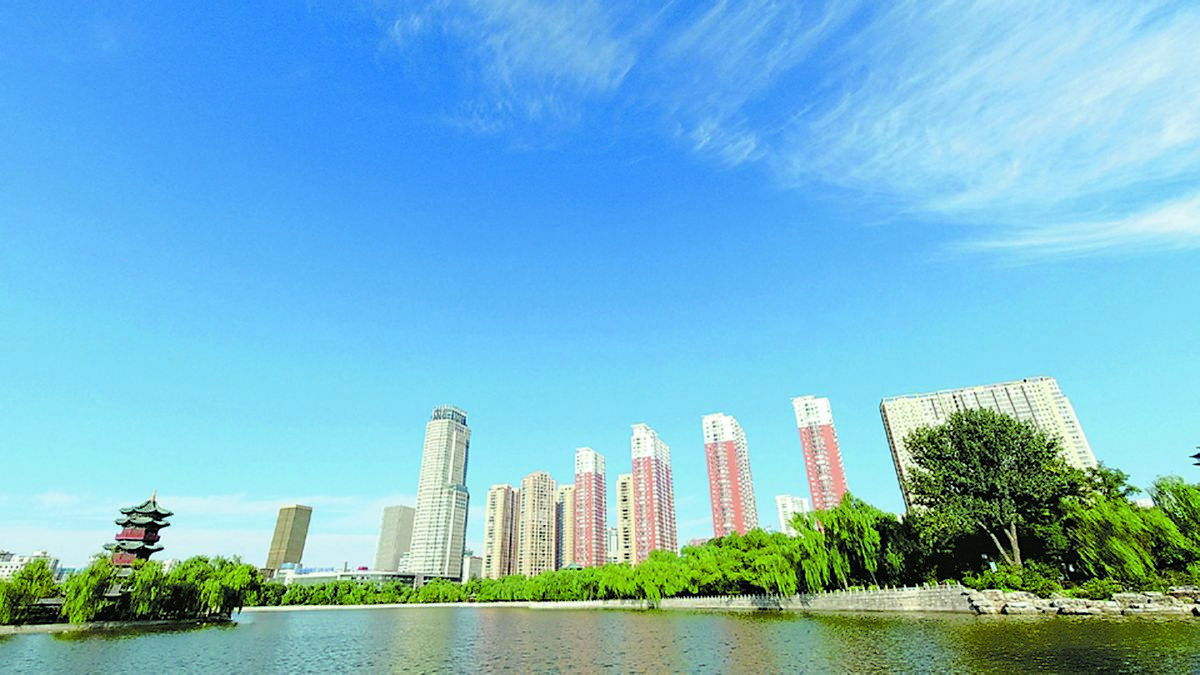 ▲9月8日,蓝天白云下的太原迎泽公园清新如画。连续几日出现一级好天气,湛蓝的天空将城市映衬得更加亮丽,人们不由得将之称为“太原蓝”。 (《山西日报》9.9)