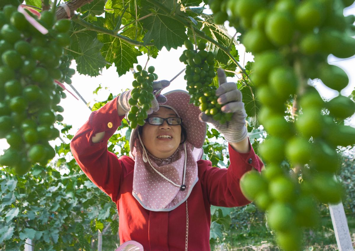 ▲北里村的山西汇瑞农业开发有限公司葡萄园,技术人员管理晚熟的阳光玫瑰葡萄。