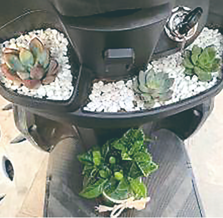在小树林有不少等单的骑手,之前小王给自己的电动车前面的手套箱种上了多肉,还戏称是装修自己的“办公室”。
