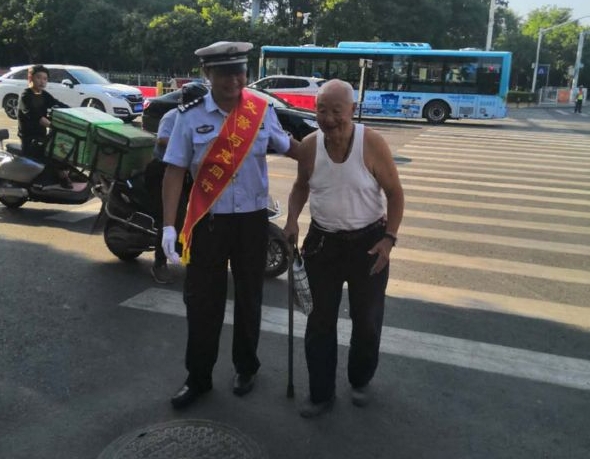 6日下午,郭女士在市区河东街与中银路交会十字路口等红绿灯时,看到有位80岁左右的老人准备过马路。老人行动不便、车辆又多,情况十分危险。一名正在执勤的民警看到后,边维持交通秩序,边迅速跑向老人。在这名热心民警的搀扶下,老人平安过了马路,过往行人纷纷点赞,郭女士感动之余拍下了这感人一幕(右图)。之后,她联系到本报热线,希望通过媒体,宣传这名热心民警的乐于助人精神。