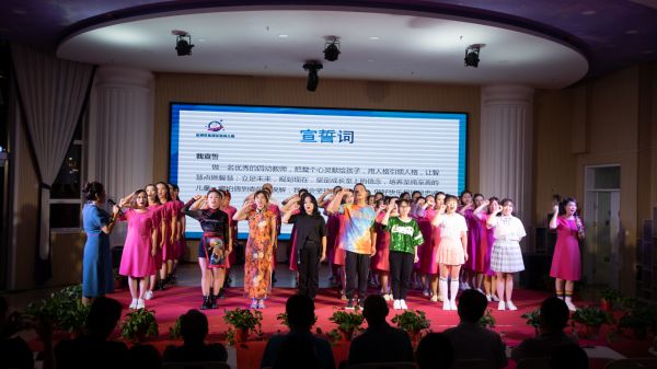 ▲“我宣誓,做一名优秀的教师,把心灵献给孩子,用人格引领人格,让智慧点燃智慧,做快乐星球忠诚的守护者!”9月8日晚,盐湖区第四实验幼儿园49名教师集体宣誓。