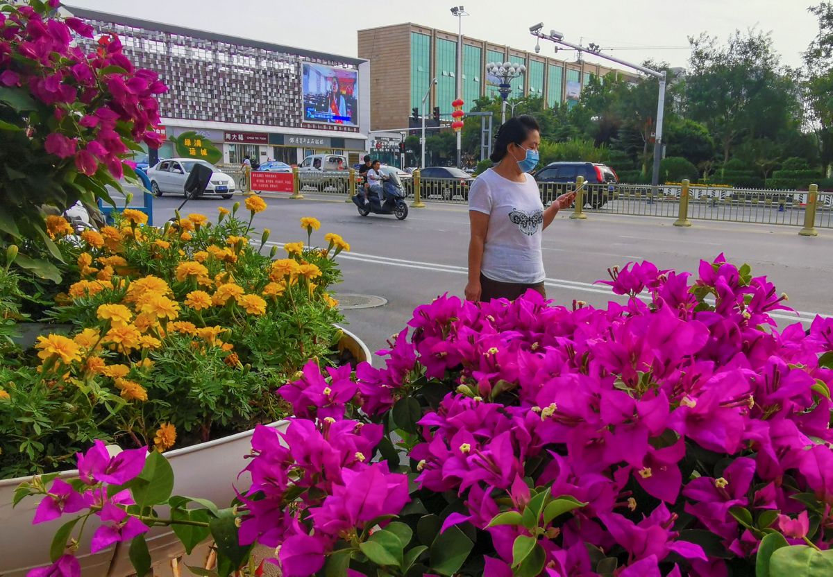 9月13日,市民从布满鲜花的城市街头走过。随着中秋、国庆的临近,我市园林部门开始在中心城区主要街道、路口、广场、公园布置各类造型的花坛,营造喜庆、欢乐、祥和的节日气氛。 特约摄影 姜 桦 摄